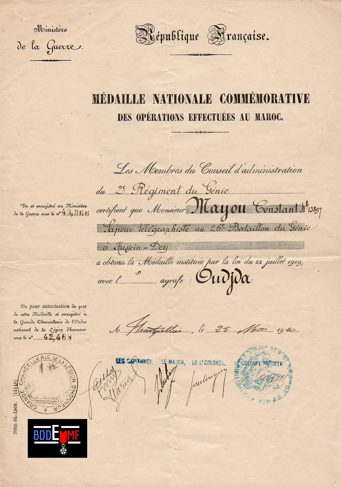 Il est enregistré auprès du ministère de la Guerre avec le numéro 6 249, le 09 juillet 1945.