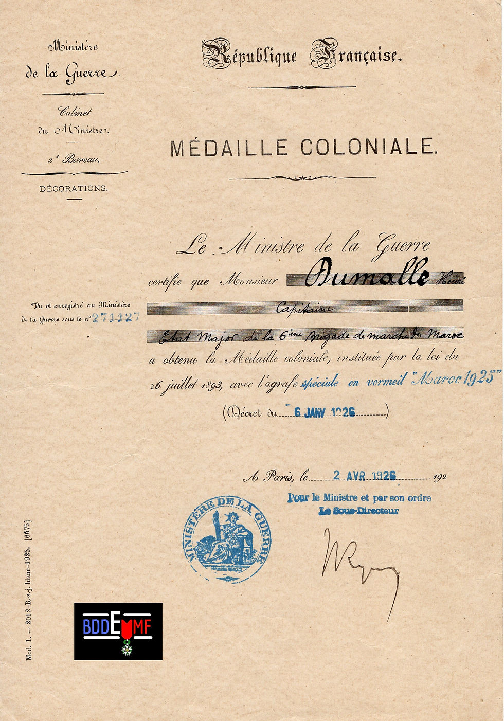Il est enregistré auprès du ministère de la Guerre avec le numéro 271 127.